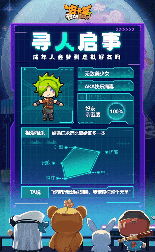 除此之外,,,,更丰富的全新玩法也会在这里与大家见面,,,,希望给大家带来不一样的游玩体验。。升级后的皮卡小镇,,大家可以和闺蜜一起逛购物街,,,,邀请三两好友来到自己开的小店,,,,还可以在小屋体验海岛或城堡生活……总之,,,希望大家能在游戏中找回最快乐的自己,,,享受最纯粹的社交魅力。。