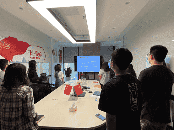 而后,,全体党员一起重新学习了解了目前的入党流程要求,,,,各支部也将在后续工作中进一步发挥支部职能,,做好发展党员工作。。。最后,,,,全体党员面向党旗,,,重温入党誓词。。。。